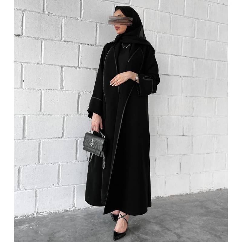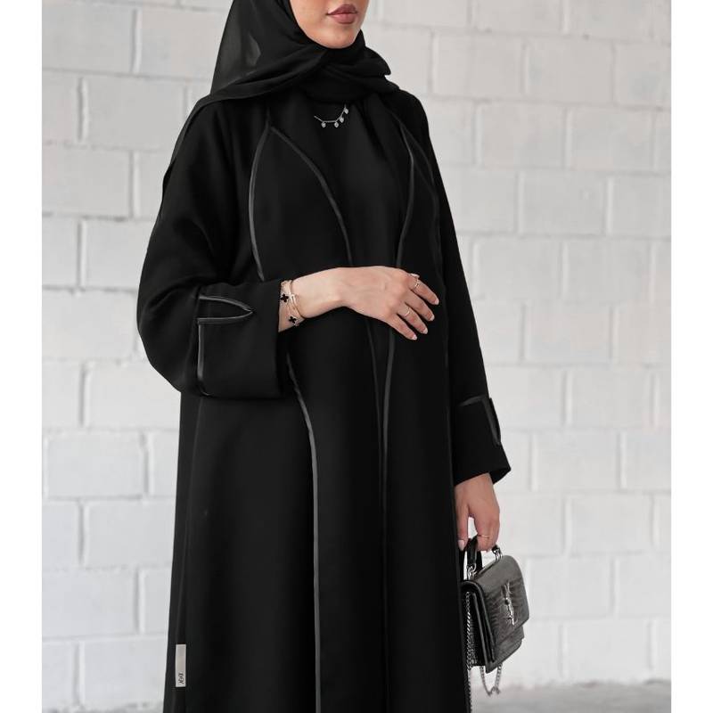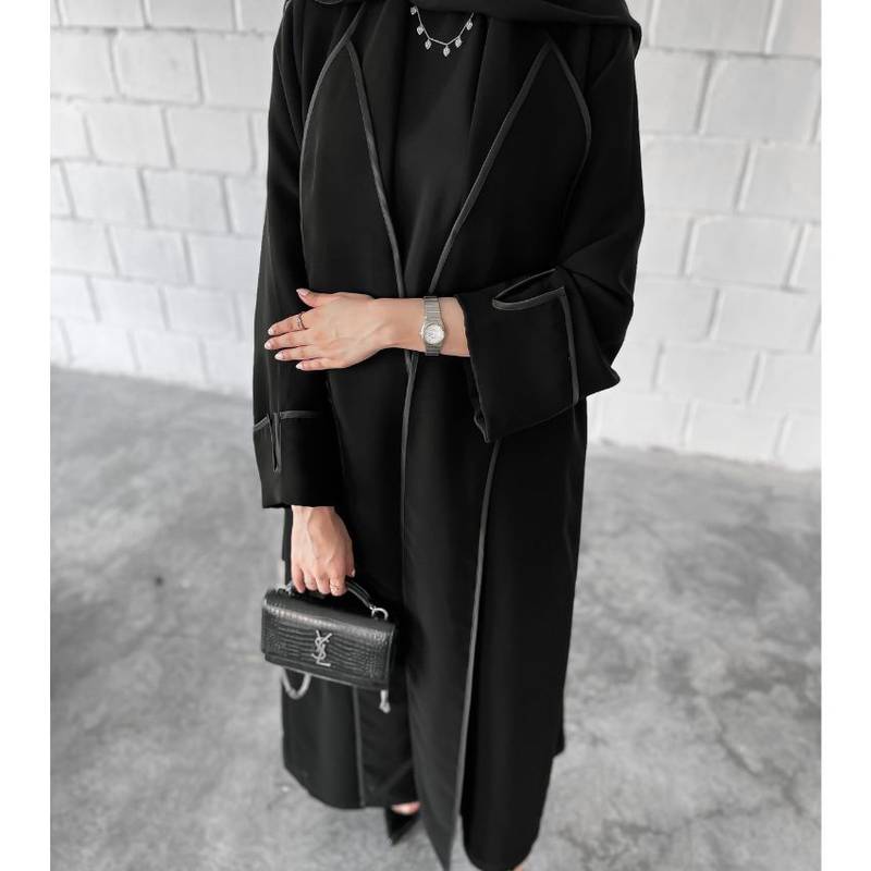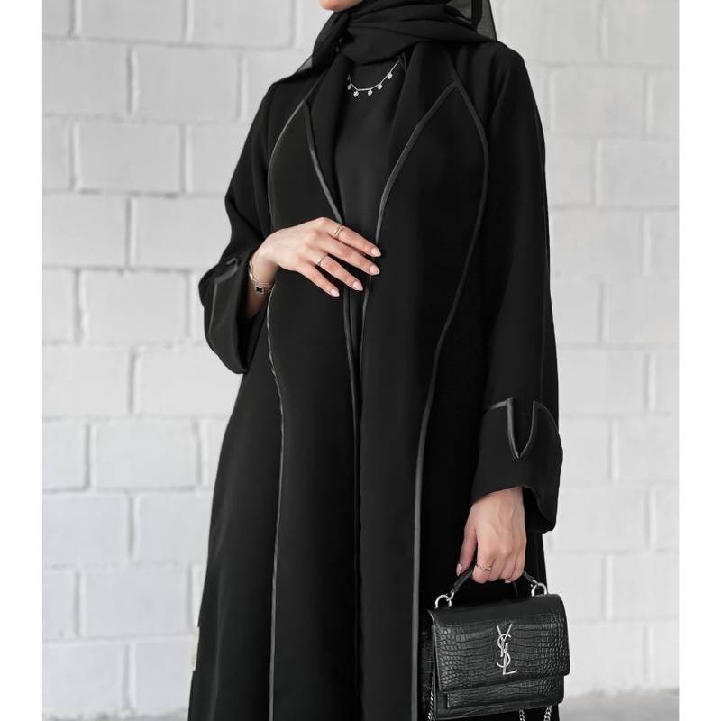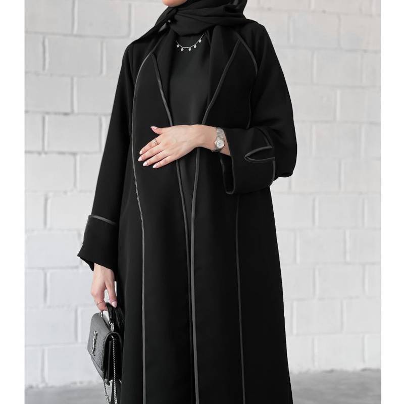 Abaya In Crepe Material With Satan Breem On Sleeves And front side.