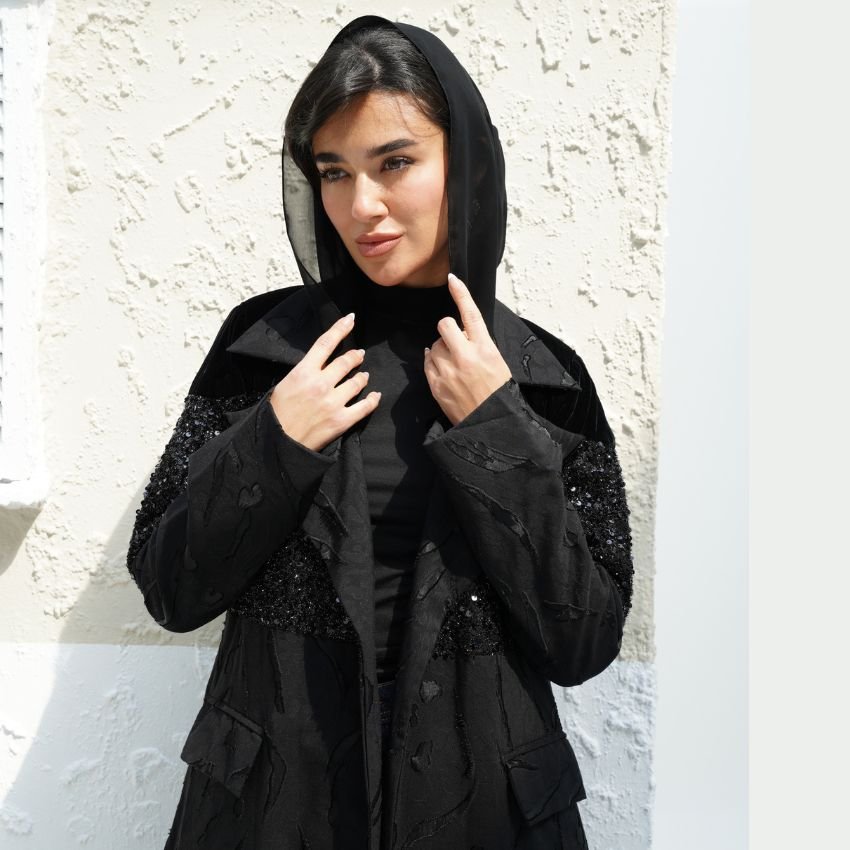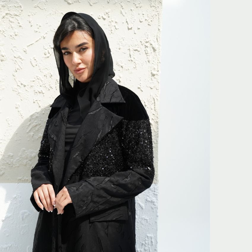 BLACK BLAZER IN LUXURIOUS JACKARD FABRIC